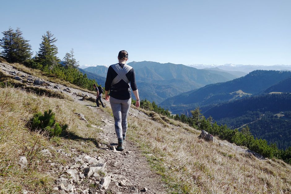 Als erster Gipfel für unseren Max wurde die Brecherspitze am Spitzingsee auserkoren. Schon bei der Ankunft wusste ich, hier war ich schon mal. Da ich vor der Schwangerschaft als Community Managerin bei The North Face tätig war, bin ich schon einige Münchner-Berge bestiegen. Manchmal kann ich mir allerdings die Namen nicht merken (geht mir leider oft auch bei Menschen so, peinlich!). Erst, als ich das Gipfelkreuz gesehen habe, konnte ich mich erinnern, welche Tour das war. Ich war damals frisch schwanger und noch niemand wusste davon. Muss also jetzt etwa ein Jahr her sein.